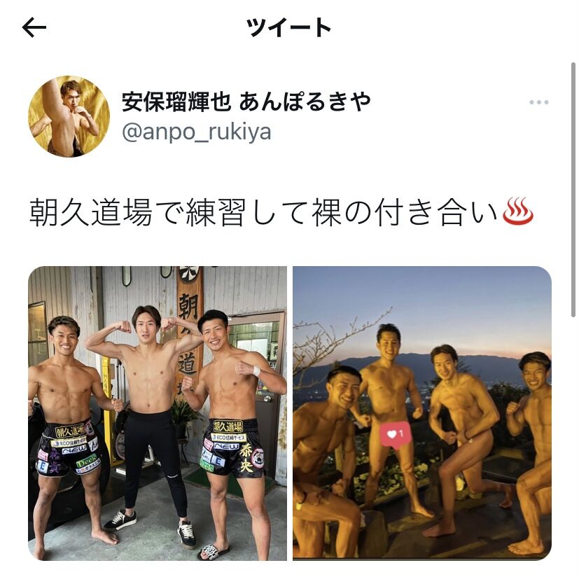 練習内容や目的は、これからYouTubeチャンネルなどで公開されると思うが、話題になっているのは全選手の全裸マッスルポーズ。安保は、「朝久道場で練習して裸の付き合い」とコメントし、鍛えられた肉体が披露された。