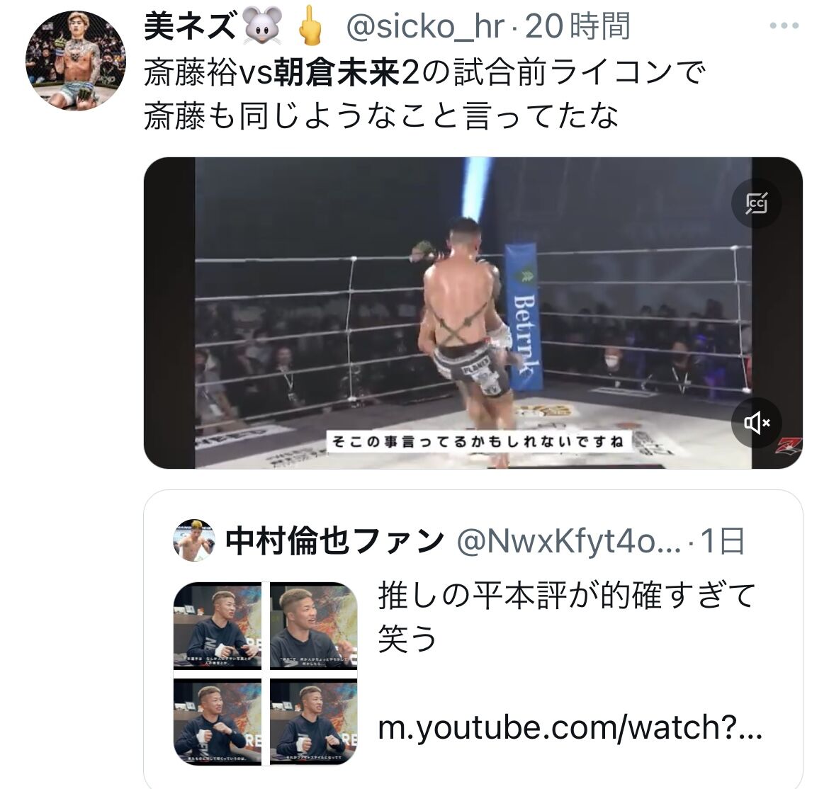 平本は昨年末、大晦日戦前の会見で「シンパシーを感じていた、朝倉未来がいたからMMAを始めた」と明かしていた。
