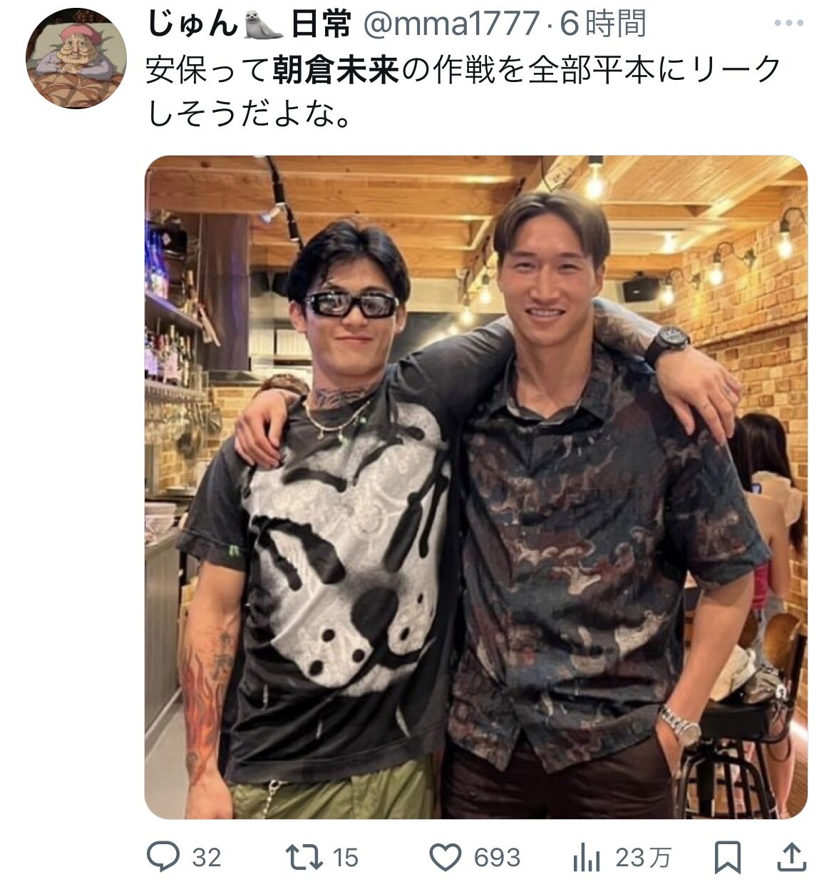 2024年7月28日(日)さいたまスーパーアリーナ『超RIZIN.3』にて、平本蓮(剛毅會)と対戦する朝倉未来(JAPAN TOP TEAM)が自身のYouTubeチャンネルを更新。試合へ向けて自信満々のコメントを残した。