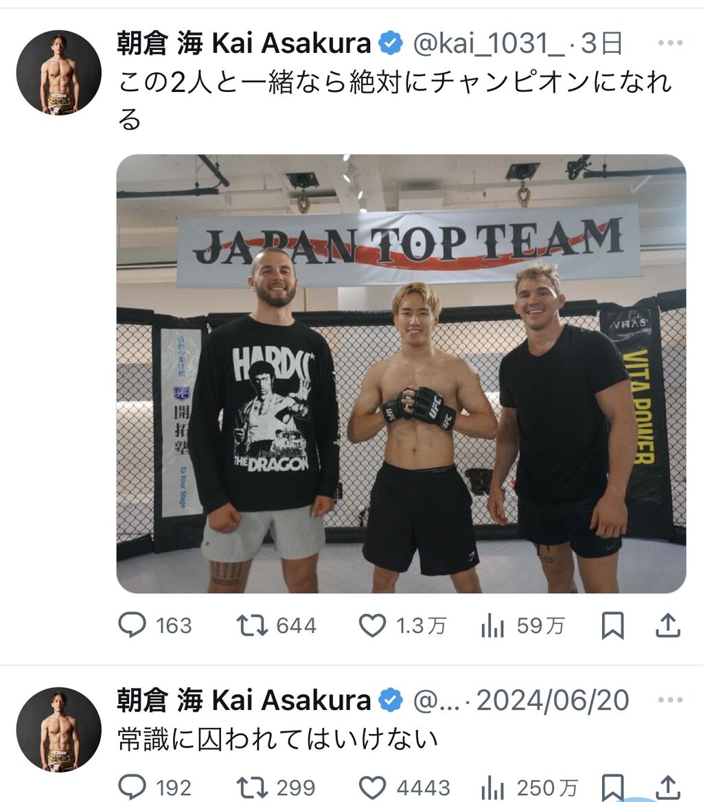 米格闘技団体「UFC」への挑戦が決まった朝倉海。その“大型契約”内容の一部を本人が自身のYouTubeチャンネル内で明かしている。