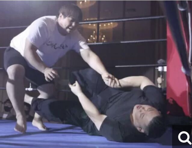 互いに100キロを超える体格の良さで、激しい肉弾戦が期待されたが、レスリングで国体出場歴があるへずまが開始わずか3秒、上手投げで将軍を転がしてみせた。