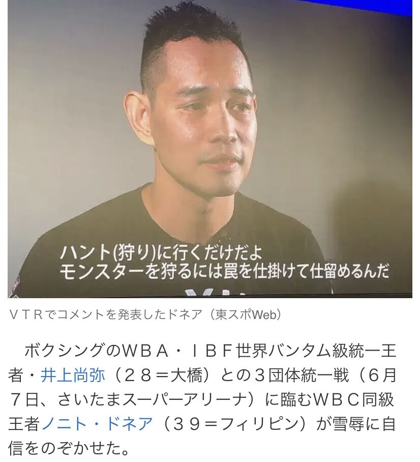 【【ボクシング】ドネア「〝モンスター〟を狩るにはワナを仕掛けて仕留めるんだ」井上尚弥への雪辱に自信】の続きを読む【ボクシング】井上尚弥VSノニト・ドネア、6・7に待望の再戦決定!!!
