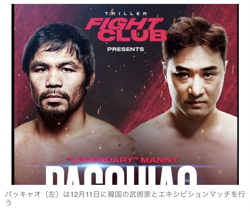 パッキャオが選手復帰を示唆「内容次第だ」12.11に韓国武術家とエキシ 2022年10月18日 カテゴリ:格闘技ボクシング 【パッキャオが選手復帰を示唆「内容次第だ」12.11に韓国武術家とエキシ】の続きを読む タグ :#格闘家#格闘技#RIZIN#パッキャオ#ボクシング#YouTube#YouTuber